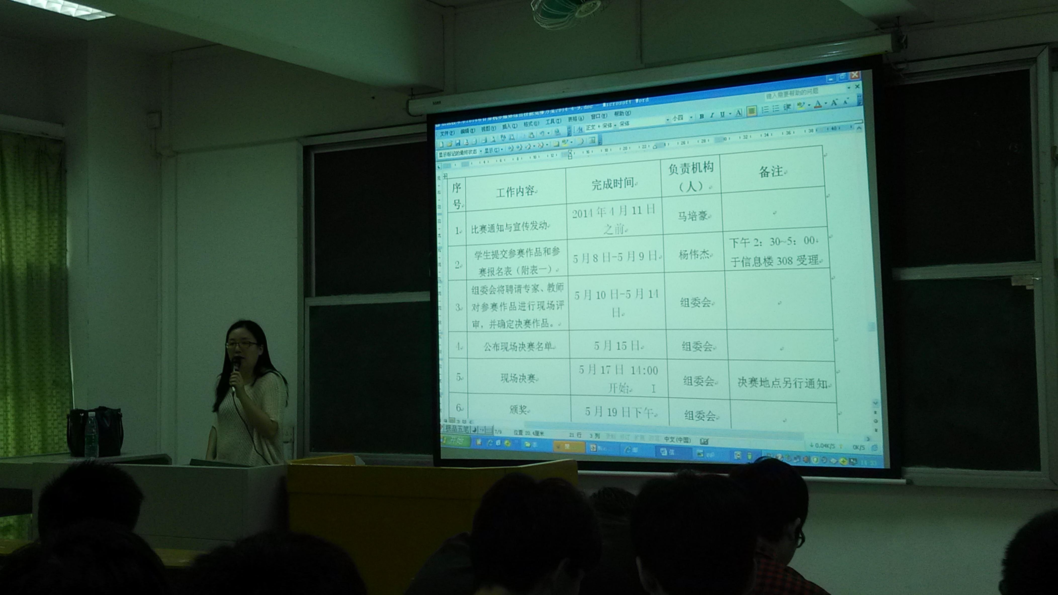 在网络赛前培训环节,主讲人杨伟杰老师就动态网站与静态网站得主要区别进行举例,以便帮助在座学生更好地理解动态网站。杨老师还提到:团队合作精神对竞赛的重要性,强调在竞争之中重合作,在合作之中求双赢。杨兴波老师先通过向学生展示历届多媒体课件制作获奖佳作,为学生讲述多媒体课件制作过程及其注意事项等等。邝磊、李矩恒老师同样在讲座中为学生播放往届学生参赛作品,还展示出2013年斩获全国一等奖的视频。两位老师就实际作品进行周密详尽的介绍,以此激起学生对摄影与视频制作的兴趣。
