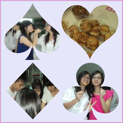 今晚,大家都玩得乐开怀,不知不觉中,活动就要进入尾声了。大家围在一起吃月饼、聊天、拍照,有说有笑,脸上洋溢着暖暖的笑容。