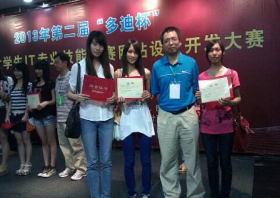 2013年第二届广东高校大学生(高职高专)‘多迪杯’网站设计开发大赛决赛于6月2日在广东岭南职业技术学院举行。由信息技术系现代教育技术专业二年级学生:林楚莹、梁柳华、林清等组成竞赛团队,经过30分钟的网站设计基础知识在线考试,以及150分钟的现场技能实操比赛,最终荣获二等奖。